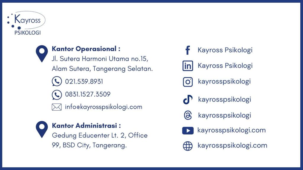 Kayross Consulting memberikan jasa asesmen atau tes psikologi baik bagi perorangan, sekolah maupun perusahaan atau organisasi.