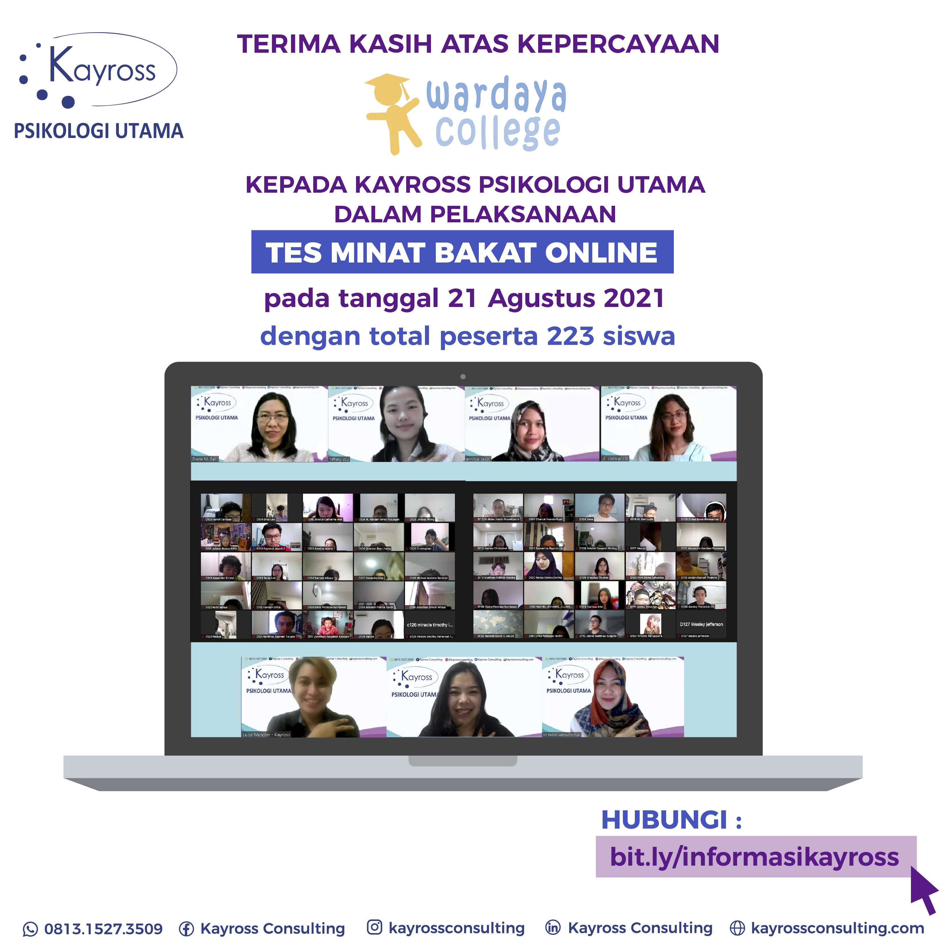 “Kayross memiliki tim dengan komitmen kerja yang baik. Psikolog yang sabar dan bersedia berkorban waktu di luar batas waktu yang disepakati. Kayross kompeten dalam menggali minat dan bakat siswa-siswa Wardaya”. (Anton Wardaya, CEO Wardaya College)